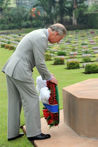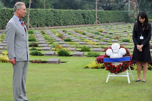 英國王儲查爾斯訪問印尼,并向二戰(zhàn)中陣亡的反法西斯戰(zhàn)士墓敬獻(xiàn)花圈。