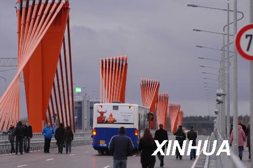 11月17日,拉脫維亞恢復(fù)獨(dú)立以來建設(shè)的最大規(guī)模建筑——南橋正式投入使用。在拉脫維亞首都里加建設(shè)的南橋長803米,寬34.28米,2004年11月開始動工興建。新華社記者楊德洪攝
