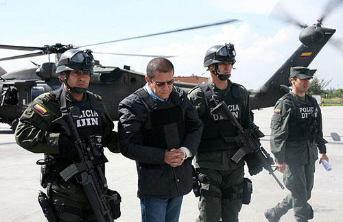 12月12日,哥倫比亞司法警察押送大毒梟迭戈·蒙托亞走向美國緝毒署的直升機(jī),將其引渡到美國。哥倫比亞總統(tǒng)烏里韋11日簽署行政決議,同意將美國聯(lián)邦調(diào)查局“十大通緝要犯”之一、哥倫比亞大毒梟迭戈·蒙托亞引渡到美國接受審判。
