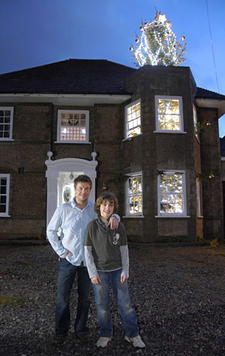 屋主人Greig Howe和他的孩子在圣誕樹前合影。
