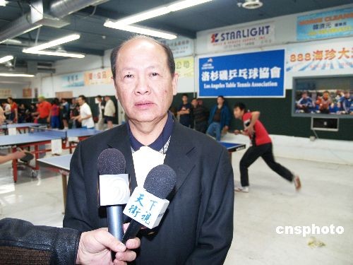 12月28日,美國亞美體育協(xié)會和洛杉磯乒乓球協(xié)會主辦2008年 “團(tuán)結(jié)杯”乒乓球比賽開賽,共有16支華人乒乓球隊(duì)、50余名選手參加逐角。美國亞美體育協(xié)會會長呂詩澄向美國媒體介紹在海外推展乒乓球運(yùn)動的體驗(yàn)。中新社發(fā) 盧威 攝