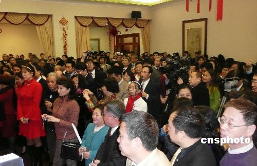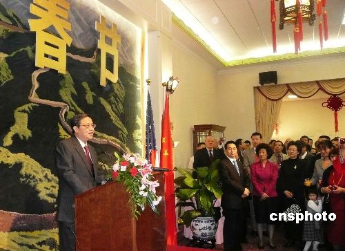 中國駐美大使周文重于當?shù)貢r間17日晚在駐美使館華僑華人春節(jié)招待會上致辭時表示,展望處于復雜而深刻變化的二00九年,中美都面臨機遇和挑戰(zhàn),中方愿與美方一道推動中美關系穩(wěn)步發(fā)展。當晚的招待會共有七百多名來自一百六十多個僑社的華僑華人出席。中新社發(fā) 覃展鵬 攝