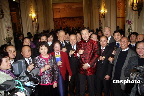 中國(guó)駐法大使孔泉十九日晚上在巴黎舉行迎新春招待會(huì),和近兩百位僑胞代表共同慶賀中國(guó)傳統(tǒng)佳節(jié)——春節(jié)的到來(lái)。中新社發(fā) 吳衛(wèi)中 攝