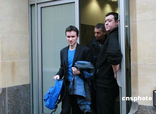 當?shù)貢r間2月10日上午10時,干擾溫家寶總理劍橋演講的德國籍學生馬丁·楊克,在劍橋地方法院出庭受審。馬丁為自己做無罪辯護,法庭將于3月10日10時重新開庭審理。圖為馬丁·楊克在初審后離開法院。中新社發(fā) 李鵬 攝