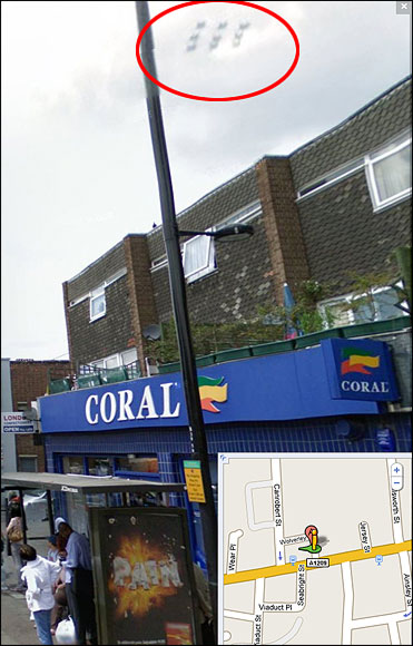 《太陽(yáng)報(bào)》報(bào)道,近日,谷歌“街景”工具拍下一組神秘照片,9個(gè)排列整齊的銀色半球體飛行物盤(pán)旋在倫敦東部的上空。這組照片一經(jīng)曝光,立即引起社會(huì)各界的密切關(guān)注。