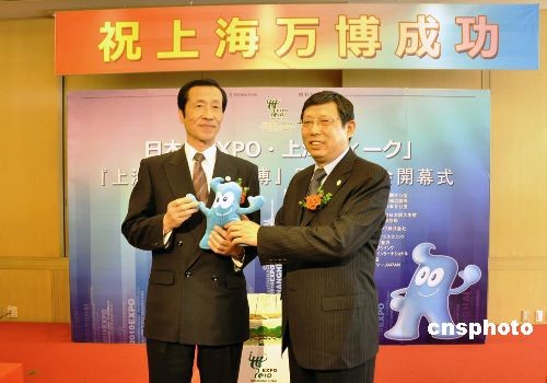 4月13日下午,日本“上海世博推介周”中的重要環(huán)節(jié)——“上海與上海世博會”圖片展,在東京羽田機場開幕。圖片展將持續(xù)到本月底,計劃在羽田機場、京濱急行列車“世博號”以及其他東京地鐵列車和站臺上展出反映上海城市風(fēng)情、市民生活、世博籌備等各方面的圖片共700幅,以讓日本市民直觀、生動地了解上海與上海世博會的最新情況。圖為上海世博會執(zhí)委會常務(wù)副主任、上海市常務(wù)副市長楊雄(右),向東京都副知事菅原秀夫贈送上海世博會吉祥物海寶。中新社發(fā) 關(guān)妍 攝