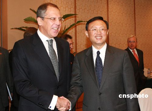 十月二十四日,中國(guó)外交部部長(zhǎng)楊潔篪在哈爾濱會(huì)見前來(lái)參加中俄印三國(guó)外長(zhǎng)會(huì)晤的俄羅斯外交部部長(zhǎng)拉夫羅夫。中新社發(fā) 廖文靜 攝