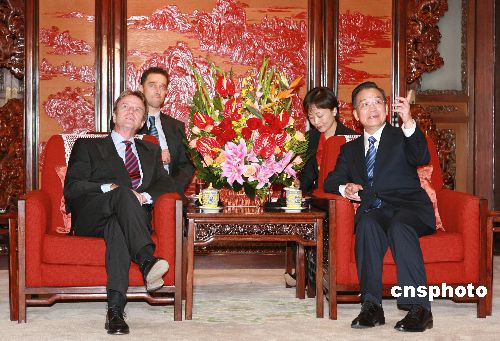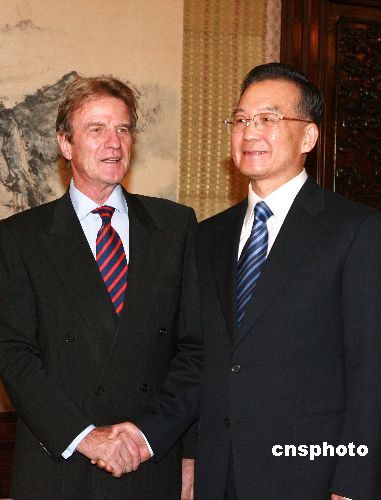 十月三十一日,中國國務院總理溫家寶在北京會見法國外交部部長貝爾納·庫什內(nèi)。中新社發(fā) 廖文靜 攝