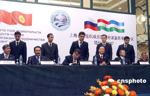十一月二日,在烏茲別克斯坦首都塔什干舉行的上海合作組織總理第六次會(huì)議結(jié)束后,六國(guó)總理簽署了聯(lián)合公報(bào)等文件,并共同會(huì)見了記者。中新社發(fā) 孫宇挺 攝