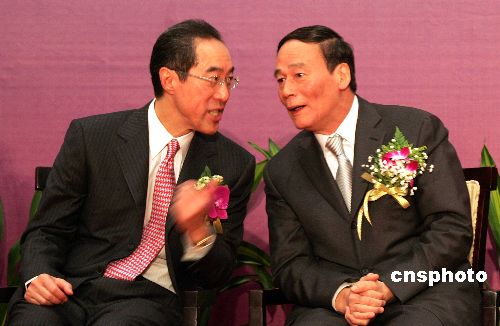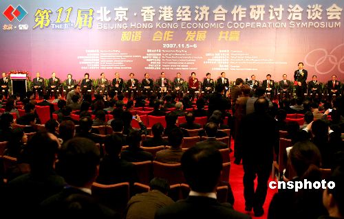 11月5日,第11屆北京·香港經(jīng)濟(jì)合作研討洽談會在北京舉行。北京市市長王岐山與香港政務(wù)司司長唐英年出席開幕式。中新社發(fā) 張宇 攝