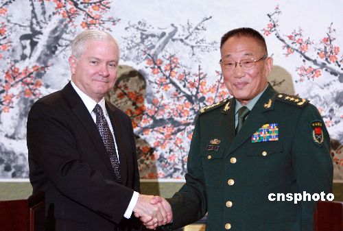 十一月五日,中華人民共和國中央軍委副主席、國務委員兼國防部長曹剛川在北京與美國國防部長羅伯特·蓋茨舉行會談。會后雙方共同會見了中外記者。中新社發(fā) 廖文靜 攝