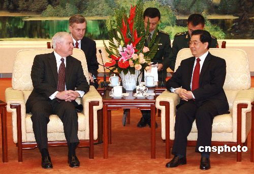 十一月六日,中國國家主席、中央軍委主席胡錦濤在北京人民大會堂會見美國國防部長羅伯特·蓋茨。中新社發(fā) 廖文靜 攝