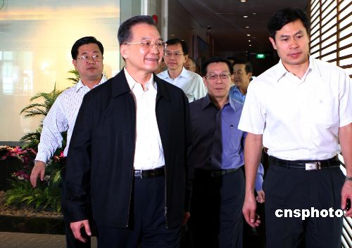 十一月二十一日上午,正在新加坡訪問并出席東亞領(lǐng)導人系列會議的中國國務院總理溫家寶,赴新加坡建屋發(fā)展局了解新加坡提供公共住屋的政策和經(jīng)驗,并參觀新加坡普惠性廉價房區(qū)——大巴窯組屋區(qū)。中新社發(fā) 周群 攝