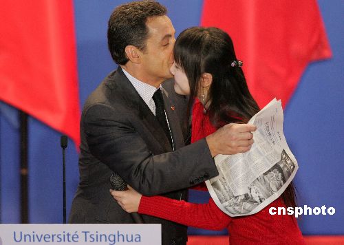 正在中國(guó)訪問(wèn)的法國(guó)總統(tǒng)尼古拉·薩科齊,11月27日上午到中國(guó)著名學(xué)府清華大學(xué)發(fā)表演講,并接受學(xué)生提問(wèn)。中新社發(fā) 任晨鳴 攝