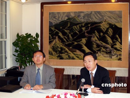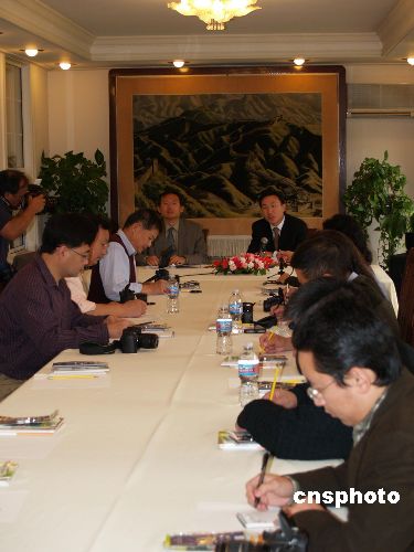 11月28日,中國駐洛杉磯總事館實(shí)行新聞發(fā)言人制度,將每月舉行一次新聞發(fā)布會(huì),廣邀美國主流媒體及華文媒體記者參加。在首次新聞發(fā)布會(huì)上,副總領(lǐng)事許朝友和新聞發(fā)言人陳世杰,就保護(hù)中國公民、北京奧運(yùn)海外志愿者報(bào)名手續(xù)等問題回答了記者的提問。中新社發(fā) 盧威 攝