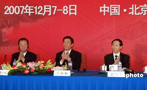 十二月七日,中國共產黨與日本民主黨定期交流機制第二次會議在北京舉行。中共中央政治局委員、中央書記處書記、中央組織部部長李源潮(中),中共中央對外聯絡部部長王家瑞(右),日本民主黨黨首小澤一郎(左)出席會議并講話。中新社發(fā) 廖文靜 攝