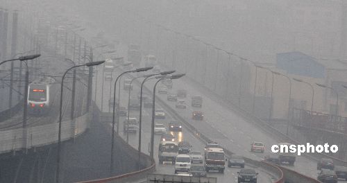 12月11日,大連東北快速路上,霧天路滑,車輛減速行駛。當(dāng)日,受惡劣天氣影響,遼寧高速公路全線封閉。中新社發(fā) 劉德斌 攝