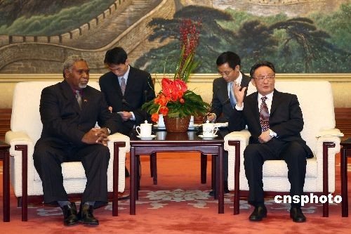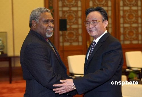 圖:吳邦國(guó)會(huì)見(jiàn)瓦努阿圖議長(zhǎng)阿沃克