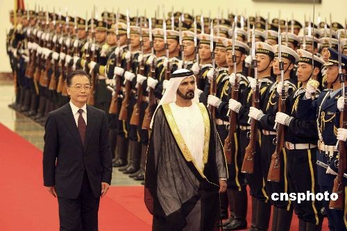 溫家寶歡迎阿聯(lián)酋副總統(tǒng)穆罕默德訪華