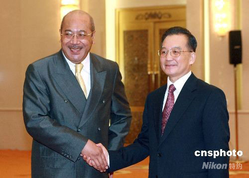 4月14日,中國國務院總理溫家寶在北京人民大會堂會見湯加國王圖普五世。中新社發(fā) 廖文靜 攝