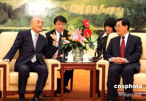 胡錦濤會(huì)見(jiàn)日本前首相中曾根康弘