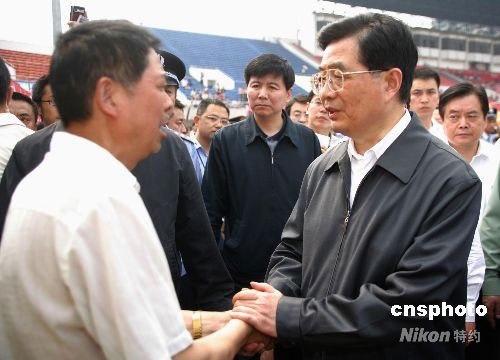 圖:胡錦濤在四川綿陽看望受災(zāi)民眾