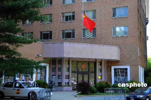 五月十九日,中國為四川地震死難者進(jìn)行全國哀悼的第一天,坐落美國華盛頓特區(qū)西北區(qū)的中國駐美國大使館降半旗,悼念死難同胞。