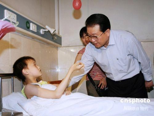 圖為李長(zhǎng)春在醫(yī)院看望受傷兒童。