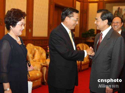 6月12日晚,新任中臺辦、國臺辦主任王毅在北京釣魚臺會見并宴請臺灣海峽交流基金會董事長江丙坤一行。中新社發(fā) 任晨鳴 攝