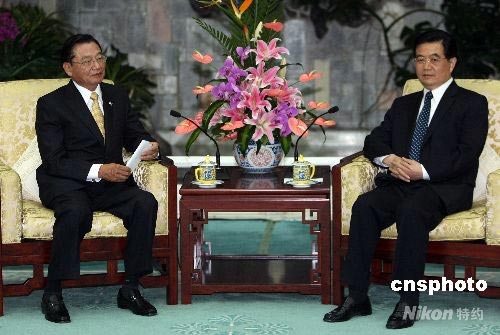中共中央總書記胡錦濤,6月13日下午在北京釣魚臺國賓館會見臺灣海峽交流基金會董事長江丙坤一行。中新社發(fā) 任晨鳴 攝