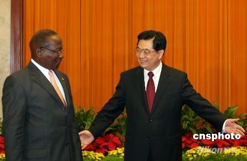 8月22日,中國國家主席胡錦濤在北京人民大會堂會見多米尼克總統(tǒng)利物浦。中新社發(fā) 廖文靜 攝