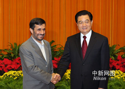 圖:胡錦濤會(huì)見伊朗總統(tǒng)內(nèi)賈德