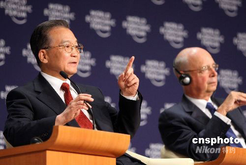 9月27日,2008天津夏季達(dá)沃斯論壇“新領(lǐng)軍者年會(huì)”開(kāi)幕,中國(guó)總理溫家寶、世界經(jīng)濟(jì)論壇主席施瓦布出席開(kāi)幕會(huì)。中新社發(fā) 張宇 攝