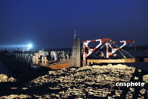 黑龍江省撫遠(yuǎn)縣七號界碑處,中方在鋪設(shè)通往黑瞎子島的浮橋。