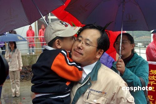 11月2日上午9時(shí)許,中國海事執(zhí)法船“海巡21”載著被三艘外籍漁業(yè)輔助船挾持的15名中國公民,安全靠泊在浙江舟山長峙碼頭。在中國海事局、中國海上搜救中心的全力救助和韓、日兩國海事部門的協(xié)助下,10月20日被外籍漁業(yè)輔助船挾持的15名中國公民安全回到祖國懷抱。中新社發(fā) 黃正勝 攝