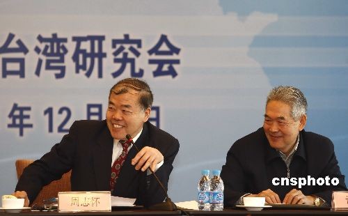 12月2日,2008年臺(tái)灣政局暨兩岸關(guān)系回顧與展望研討會(huì)在北京舉行,全國(guó)臺(tái)灣研究會(huì)執(zhí)行副會(huì)長(zhǎng)兼秘書(shū)長(zhǎng)周志懷(左),全國(guó)臺(tái)灣研究會(huì)副會(huì)長(zhǎng)許世銓參加研討會(huì)。中新社發(fā) 盛佳鵬 攝