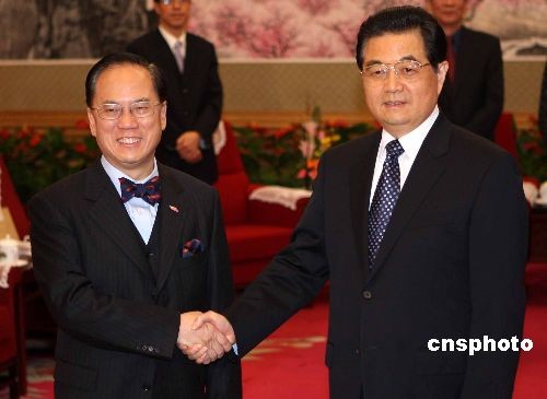 圖:胡錦濤會(huì)見香港特區(qū)行政長官曾蔭權(quán)