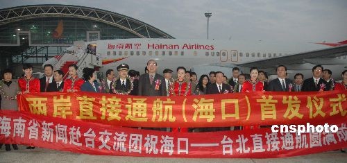 圖:海口至臺北直航班機正式開通