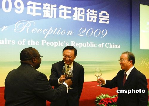 12月28日,中國外交部部長楊潔篪在北京釣魚臺國賓館舉行“外交部2009年新年招待會”,招待各國駐華使節(jié)和國際組織代表及其配偶。國務(wù)委員戴秉國、有關(guān)部門負責(zé)人及中外來賓400余人出席。中新社發(fā) 盛佳鵬 攝