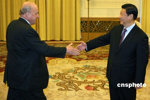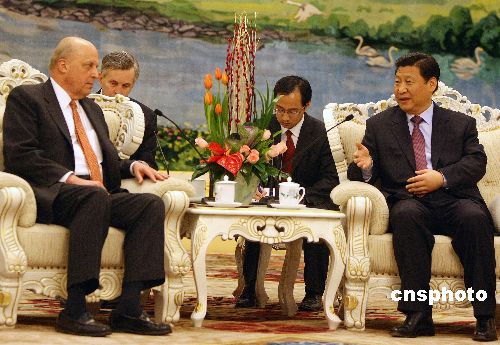 1月8日下午,中國國家副主席習(xí)近平在北京人民大會堂會見前來參加慶祝中美建交30周年活動的美國副國務(wù)卿內(nèi)格羅蓬特一行。中新社發(fā) 任晨鳴 攝