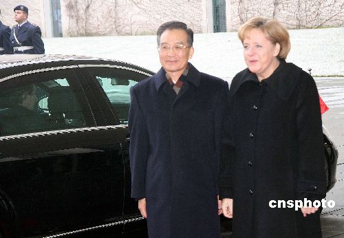 當(dāng)?shù)貢r(shí)間一月二十九日上午,德國(guó)總理默克爾在柏林總理府舉行儀式,歡迎中國(guó)國(guó)務(wù)院總理溫家寶到訪。雙方并舉行了會(huì)談。中新社發(fā) 吳衛(wèi)中 攝