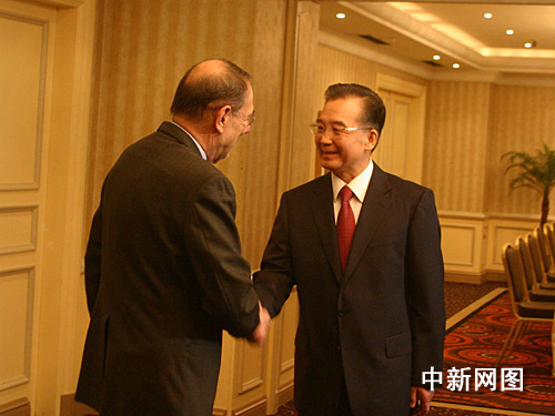 正在這里對歐盟總部進(jìn)行正式訪問的中國總理溫家寶,當(dāng)?shù)貢r間一月三十日上午在下榻飯店會見了歐盟理事會秘書長兼共同外交與安全政策高級代表索拉納(左)。雙方對中歐關(guān)系重要性均給予高度肯定。張朔 攝