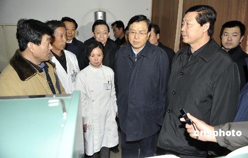 2009年2月22日晚10點,醫(yī)務人員向國務院副總理張德江、國家安全監(jiān)管總局局長駱琳、山西省委書記張寶順、省長王君、山西省衛(wèi)生廳廳長高國順等匯報受傷人員情況。當日凌晨,山西西山煤電公司屯蘭礦發(fā)生一起特大瓦斯爆炸事故,造成74人死亡,114名傷員在醫(yī)院接受觀察、治療。張德江副總理當晚趕到屯蘭煤礦事故現場,看望并慰問遇難者家屬和受傷人員,并宣布成立國務院山西焦煤集團屯蘭煤礦瓦斯爆炸事故調查組。中新社發(fā) 安全 攝