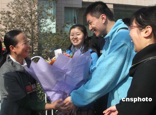 3月8日國際婦女節(jié),來自山東的全國人大代表、煙臺(tái)二中數(shù)學(xué)老師郝翠娟收到了在北京上大學(xué)的學(xué)生們送來的節(jié)日祝福。中新社發(fā) 張婭子 攝