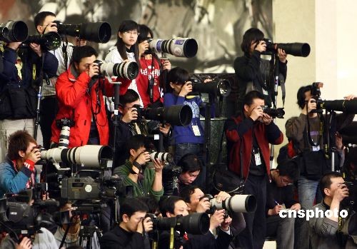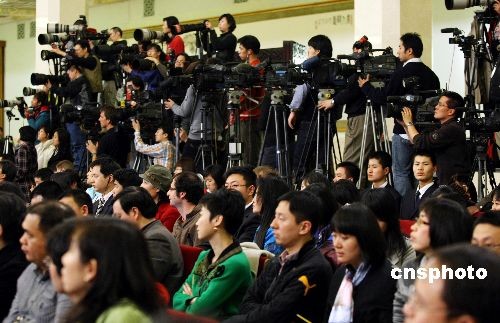 3月13日上午10時(shí),國(guó)務(wù)院總理溫家寶應(yīng)十一屆全國(guó)人大二次會(huì)議大會(huì)發(fā)言人的邀請(qǐng),在人民大會(huì)堂與采訪大會(huì)的中外記者見(jiàn)面并回答記者提出的問(wèn)題。眾多攝影記者“長(zhǎng)槍短炮”關(guān)注總理發(fā)布會(huì)。