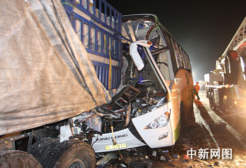 中新網(wǎng)3月20日電 19日17時(shí)左右,在黑龍江省哈同公路(方正縣境內(nèi))發(fā)生一起嚴(yán)重的交通事故,一輛金龍大客車與一輛貨車追尾相撞,事故造成19人死亡。據(jù)了解,事故發(fā)生時(shí),車上共有乘客41人(該車定員為42人),目前傷者正在醫(yī)院接收救治。(雷雨)