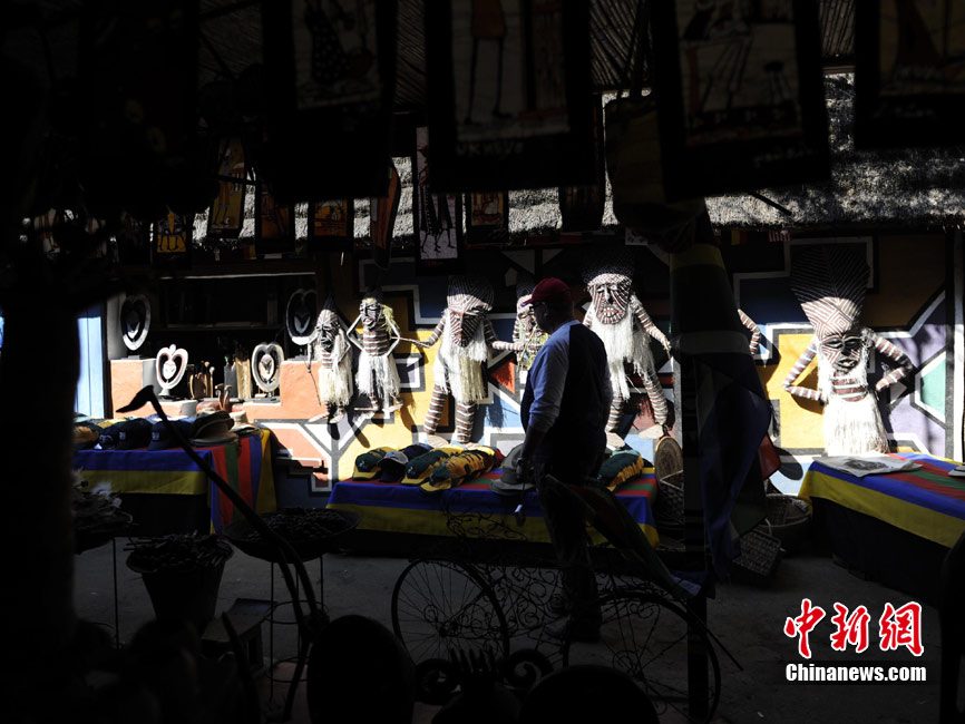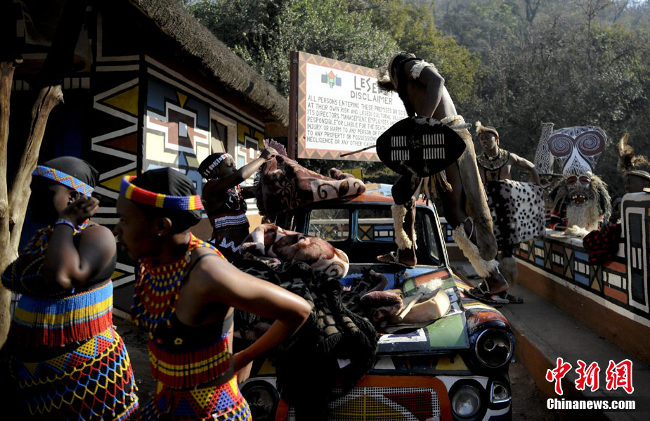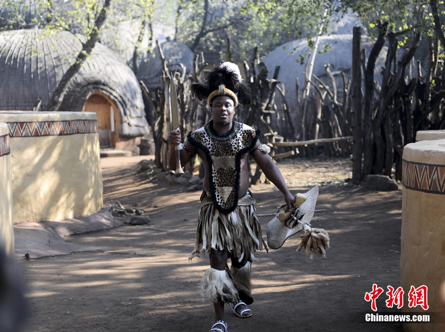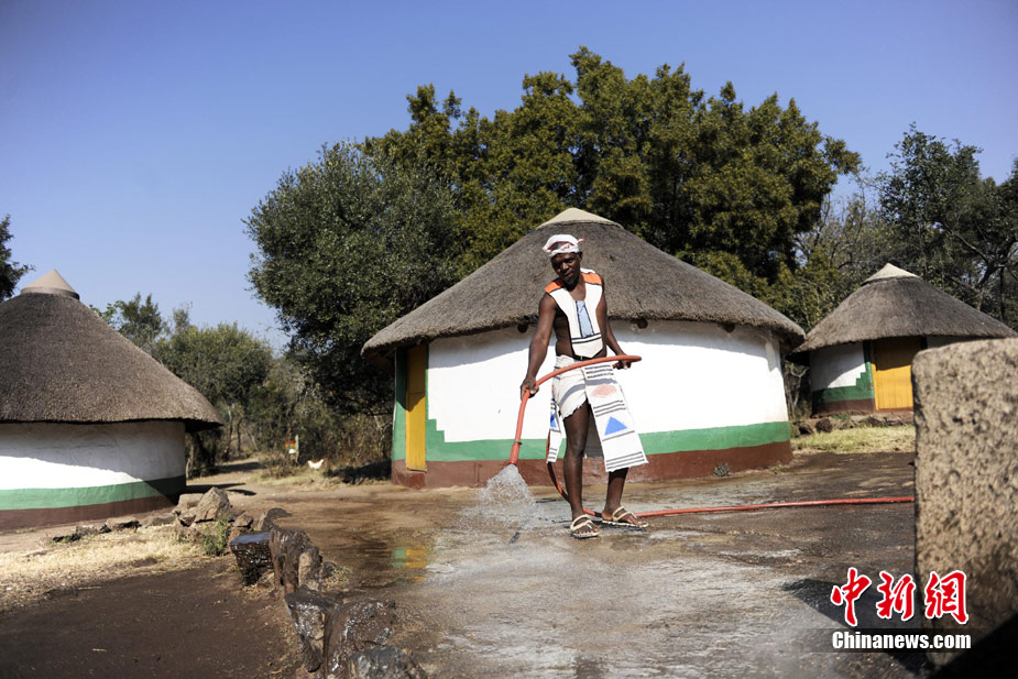 在南非約堡郊外,號(hào)稱“南非文化窗口”的萊賽迪(Lesedi)民俗村,聚居著南非最重要的四個(gè)部落。這里有著非洲土著餐飲,還有著原生態(tài)的舞蹈表演,當(dāng)客人來訪,村民就會(huì)盛裝在村口迎接。圖為萊賽迪民俗村。 中新社記者 廖攀攝