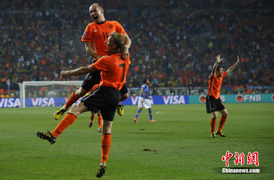 7月2日晚,南非世界杯進(jìn)行了1/4決賽的首場比賽,由荷蘭隊(duì)迎戰(zhàn)巴西。雖然羅比尼奧在上半場率先破門,但下半場憑借胡安的烏龍球和斯內(nèi)德頭槌建功,荷蘭隊(duì)2-1逆轉(zhuǎn)擊敗巴西隊(duì),率先挺進(jìn)四強(qiáng)。