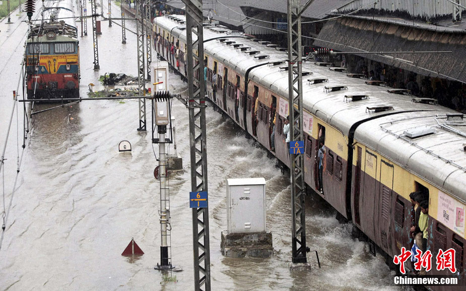 7月3日,印度孟買遭暴雨襲擊。市區(qū)幾乎變成澤國,公路、鐵路等交通受影響嚴重。