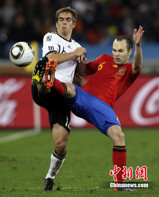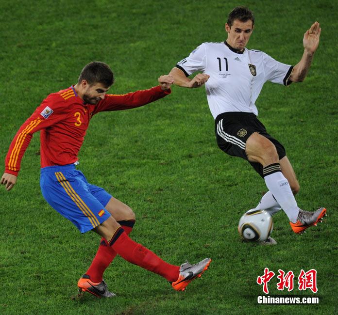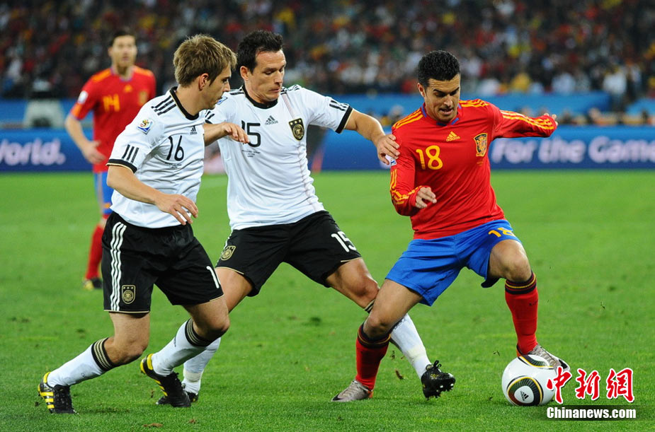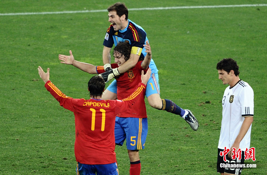 北京時間7月8日凌晨2:30,南非世界杯第二場半決賽在德班球場拉開戰(zhàn)幕,由德國隊(duì)迎戰(zhàn)西班牙。憑借普約爾在第73分鐘的頭球破門,西班牙隊(duì)1-0力克德國,與荷蘭隊(duì)會師決賽。